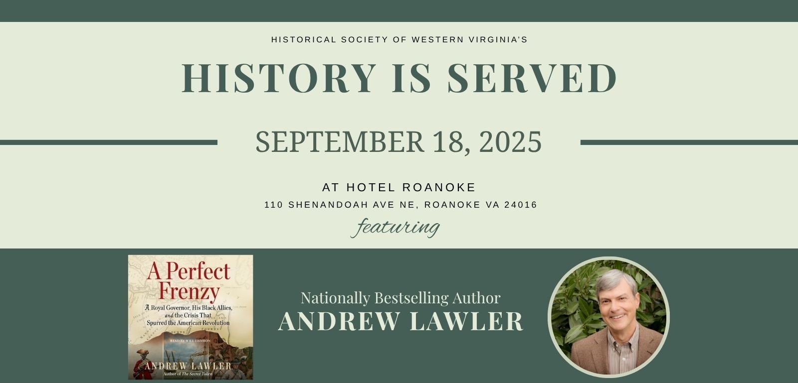 “The Historical Society of Western Virginia invites you to join us at “History Is Served,” our annual event, held September 18, 2025 at Hotel Roanoke.